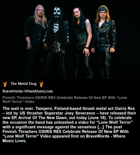#OsirisRex #FinnishThrash #LoneWolfTerror #Tampere #Metal #News #HeavyMetal #SuperstarJoeySeverance #EPRelease #Bravewords
