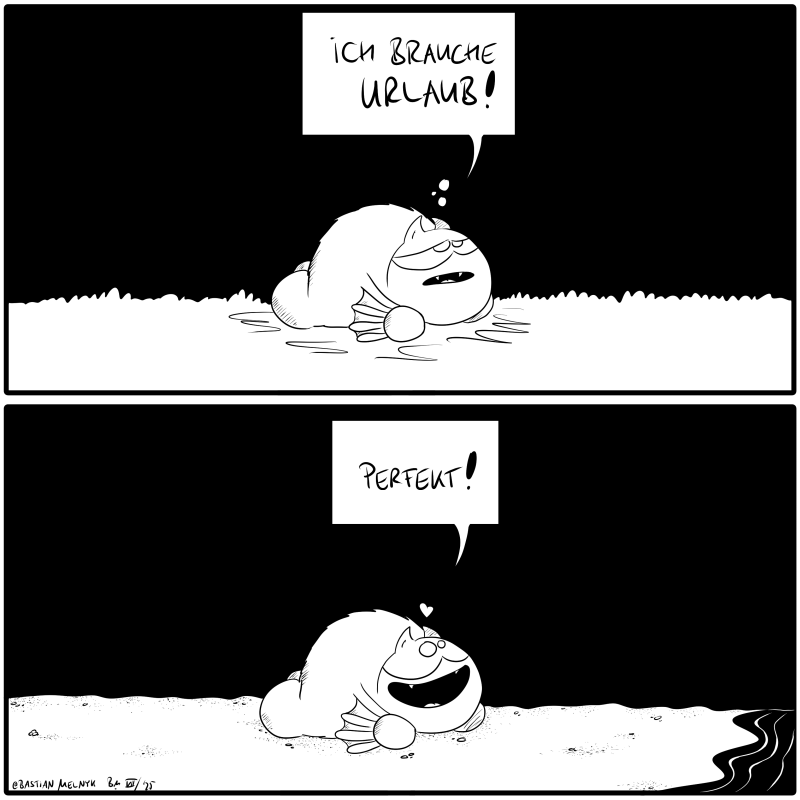 #urlaub #boden #müde #erschöpft #perfekt #sand #strand #meer #identisch #fred #comic #weiss #schwarz #webcomic #cartoon #2025 #heute #Fledermaus #Optimismus #3malprowoche #schwarzweiss #digitalart #fonflatter #fredthebat