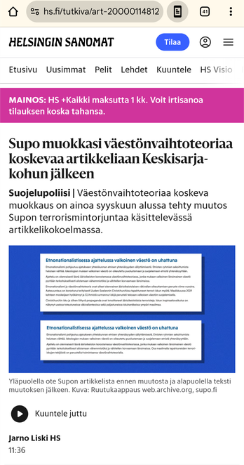 Tämä siis ilmeisesti ollut Twitterissä alunperin, siitä Suomen Uutiset tehneet jutun jonka sattumalta näin. En laita mitään linkkiä, koska siihen aviisiin en halua linkittää vaikka mikä olisi. Ne joille ei mun sana riitä voivat kyllä itse sen käydä sieltä lukemassa, ei ole vaikea löytää, mutta en kyllä siltikään voi suositella koska se ei tuo mitään lisäarvoa tähän maailmaan, pikemminkin päin vastoin.