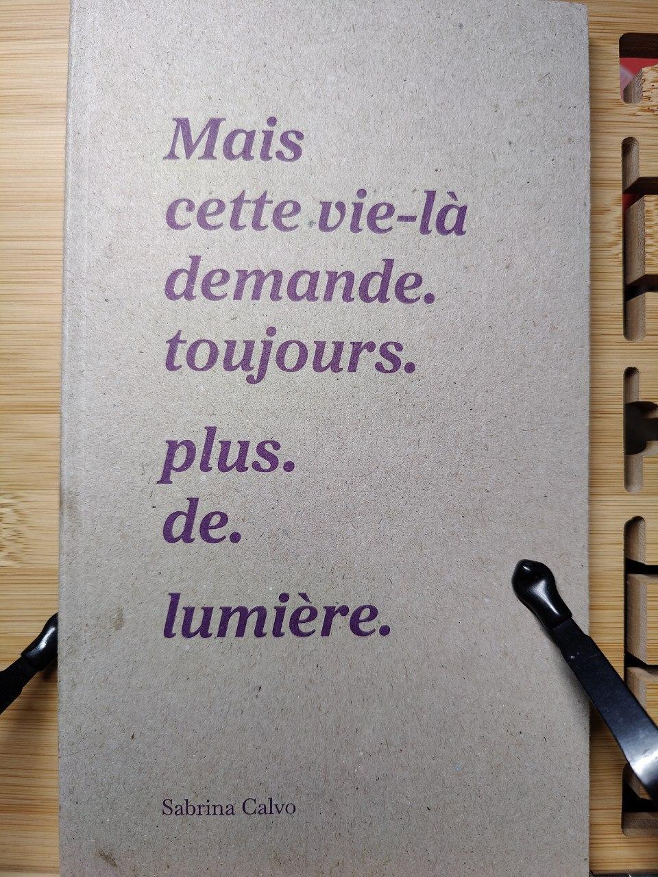 ("Mais cette vie-là demande. toujours. plus. de. lumière.", de Sabrina Calvo, p. 78.)