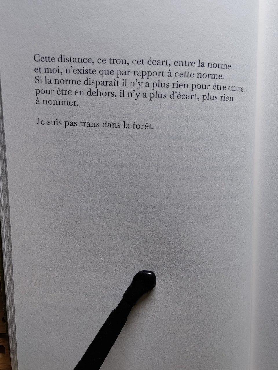 Un extrait du texte "Je suis pas trans dans la forêt" :