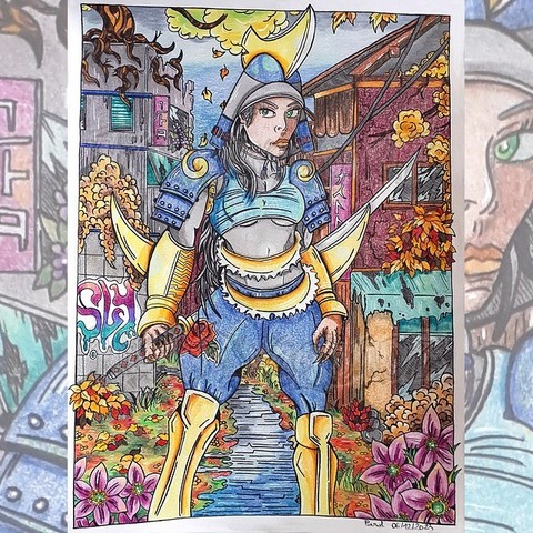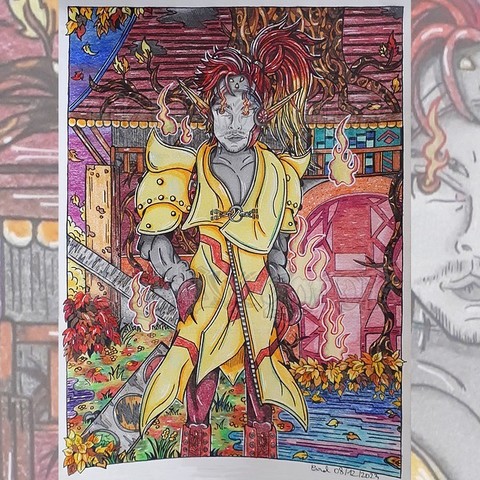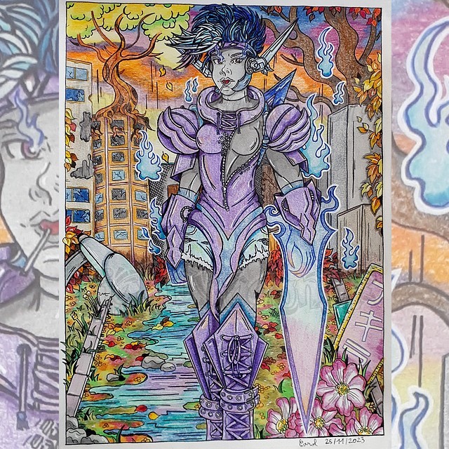 #traditionalart #colorpencil #drawing #darkfantasy #dark #gothic #night #fanart #pokemon #pokemonfanart #pokemongijinka #pokemonsona #ceruledge #knight #demon #houndoom #hellhound #roses #skull #myart #mystyle