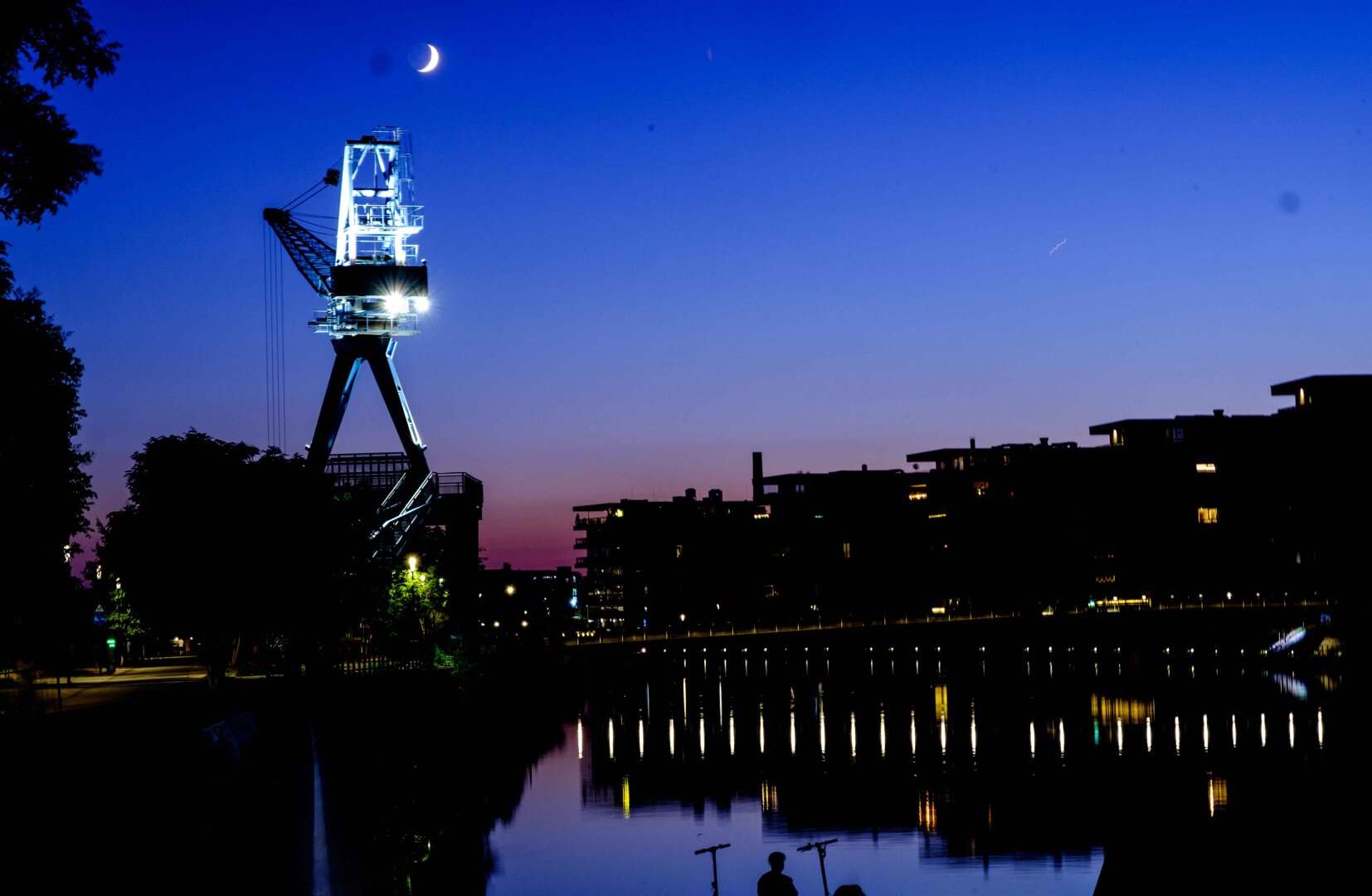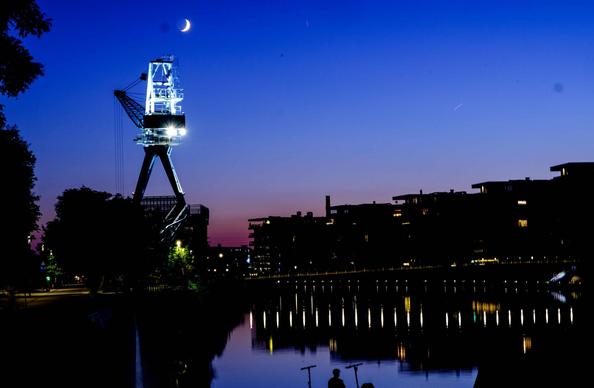 Mond über'm Kran in Offenbach.
