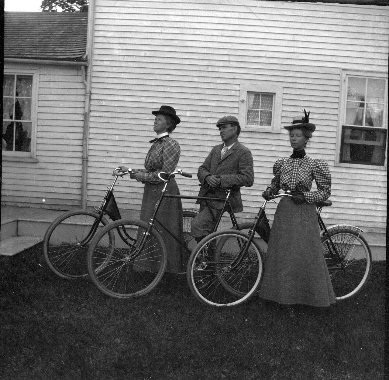 “Fannie, Lillie & Harry & their bicycles.” (ca. 1898) by Theresa Babb.