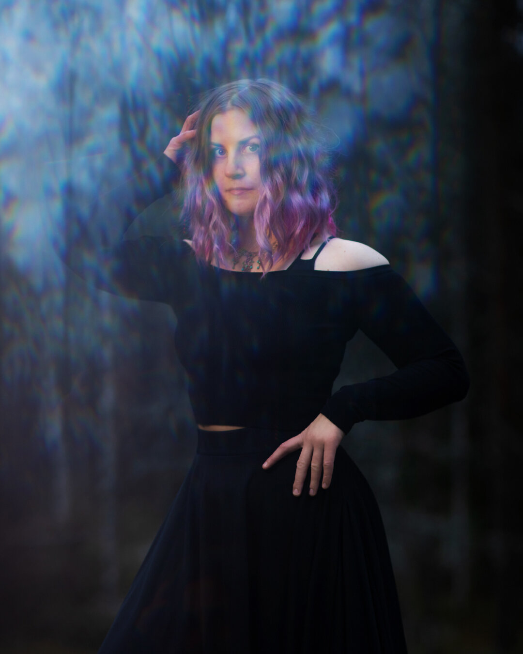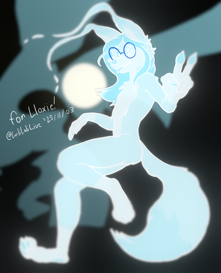 #furry #furryart #lloxiecharacter #phasefox #vulpine #fox #nonbinarylore #glasses #purplehair #phasingthroughwall #incorporeal #giftart
