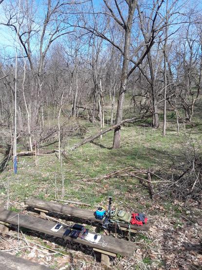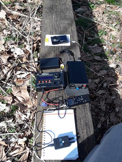#hfbandconditions are living up to the #spaceweather #spacewx hype. Nice spring hike in the woods though with an added bonus of a cw #morsecode #qrpr #hb1b #pota #parksontheair activation #QSO with Howie #ac4fs #amateurradio #hamradio