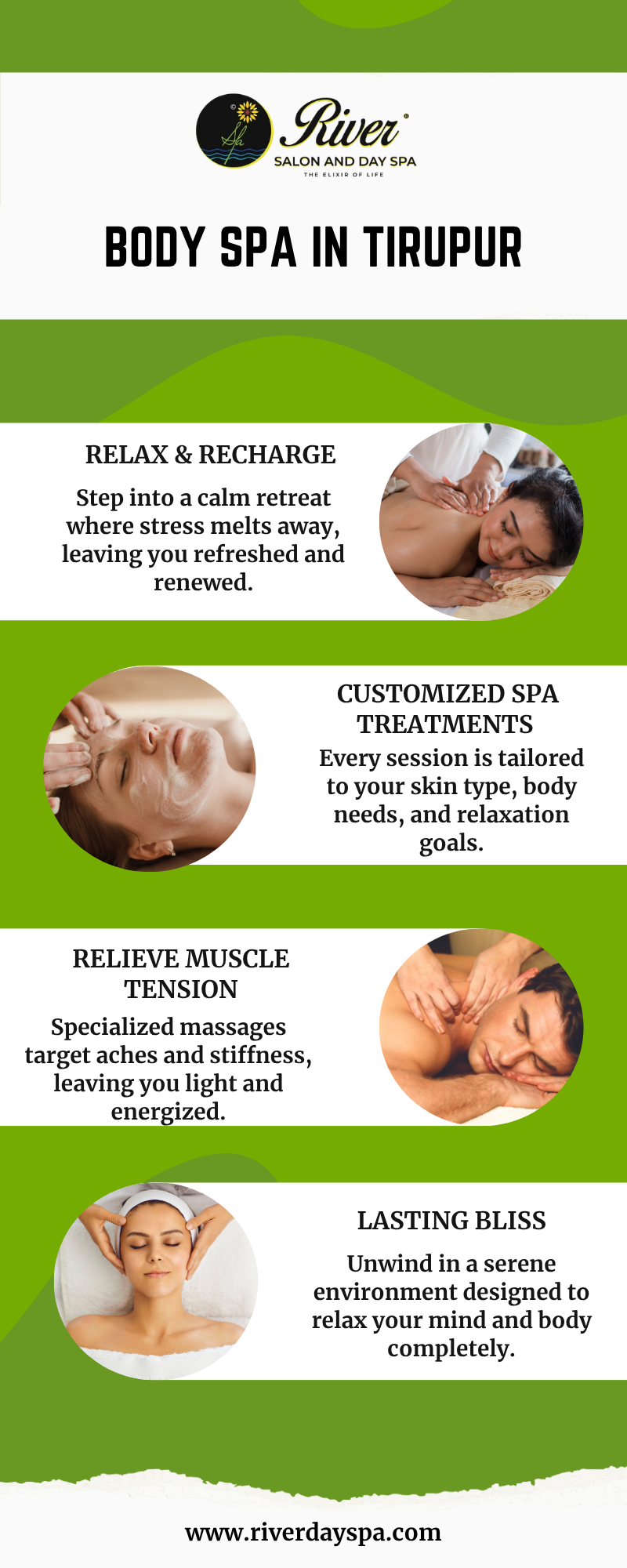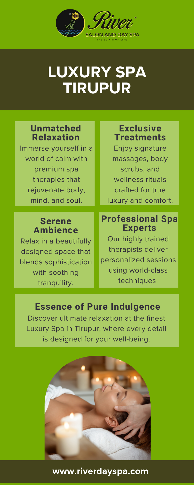 #LuxurySpaTirupur #RiverDaySpa #TirupurWellness #RelaxationTherapy #SpaExperience
