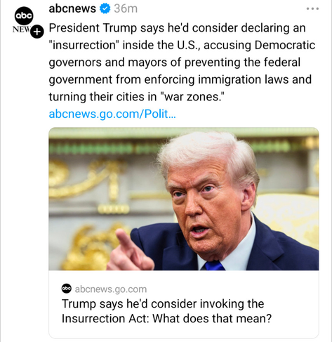 #Trump appears to be threatening #governors & #mayors opposing his illegal attempts at taking over #nationalguard units & occupying cities.