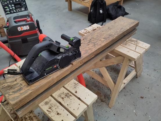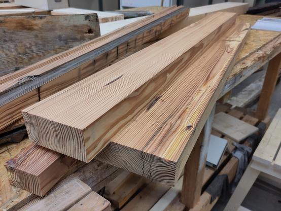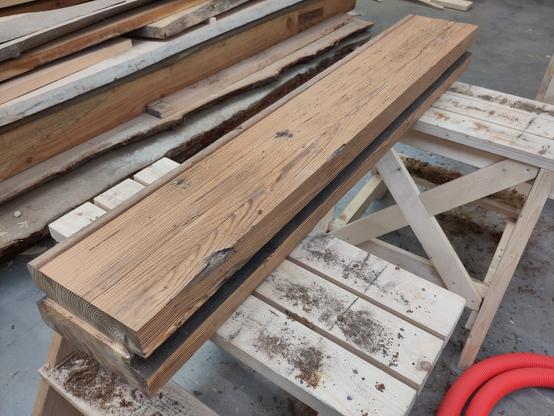 En zo maak je van oude pakhuis vloerbalken van 150 jaar oud een paar onderdelen voor de te restaureren poort.