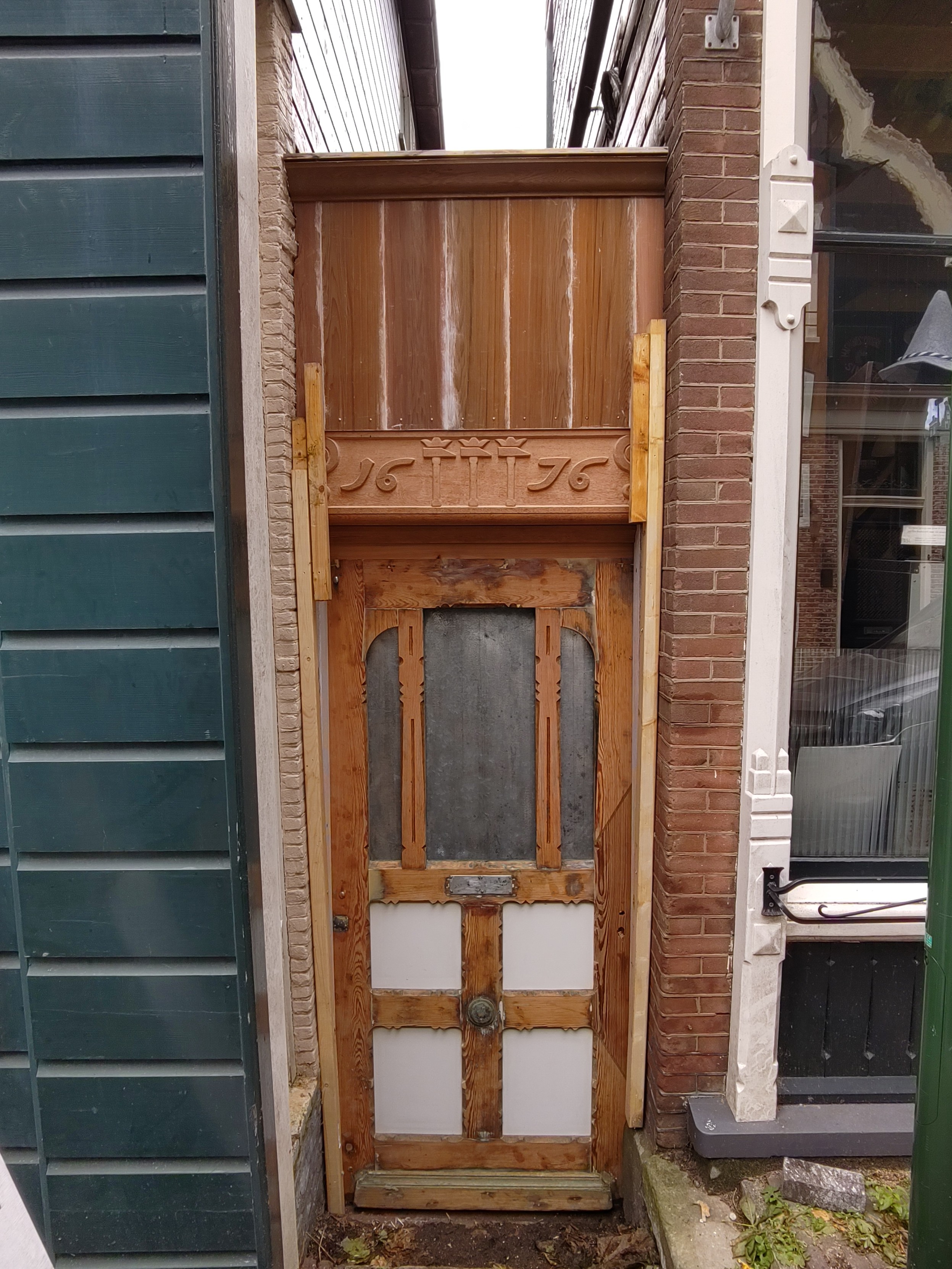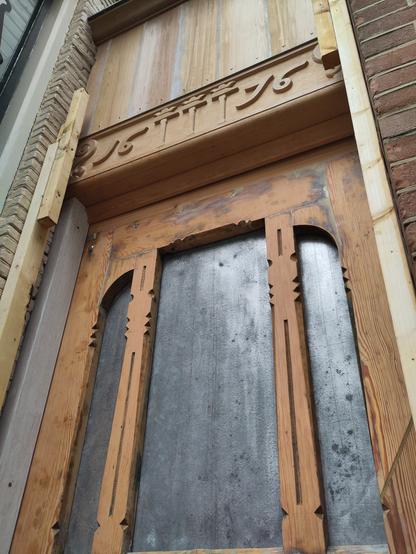 Houtsnijwerk aangebracht op de nieuwe stijl een slot geplaatst.