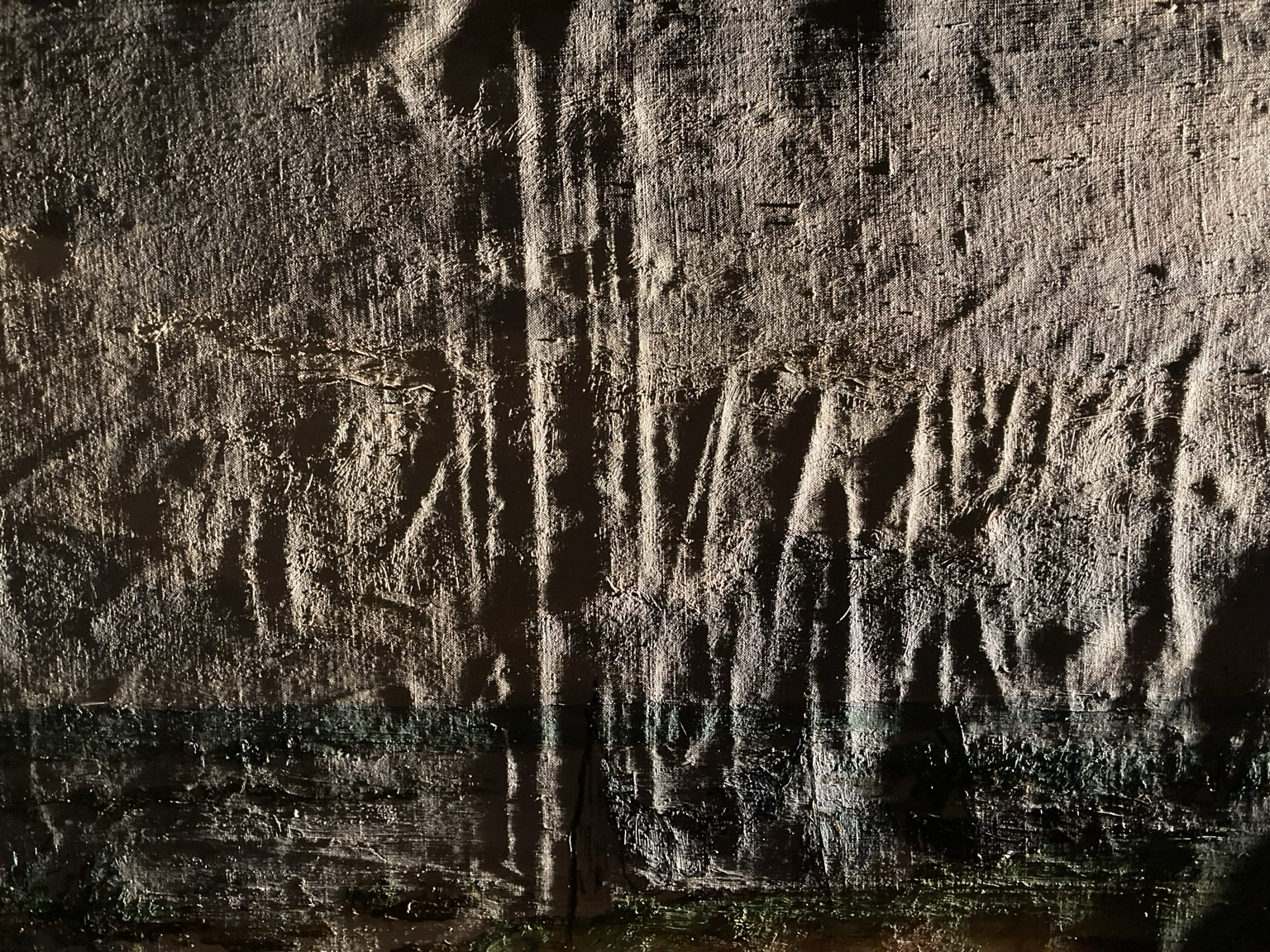 Als je een #Schilderij aan de achterkant afstoft met de zuigmond van de stofzuiger, tekenen zich jaren later dit soort sporen af in doek en verf. Vreselijk! Huishouden is een vak!