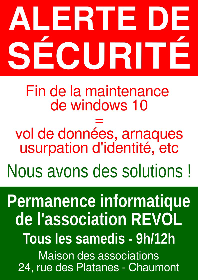 Chaumont: Permanence Informatique de REVOL, Le samedi 1 novembre 2025 de 09h00 à 12h00. https://www.agendadulibre.org/events/33647 #mda #autoHébergement #gull52 #revol #adieuWindows #ubuntu #linuxMint #logicielsLibres