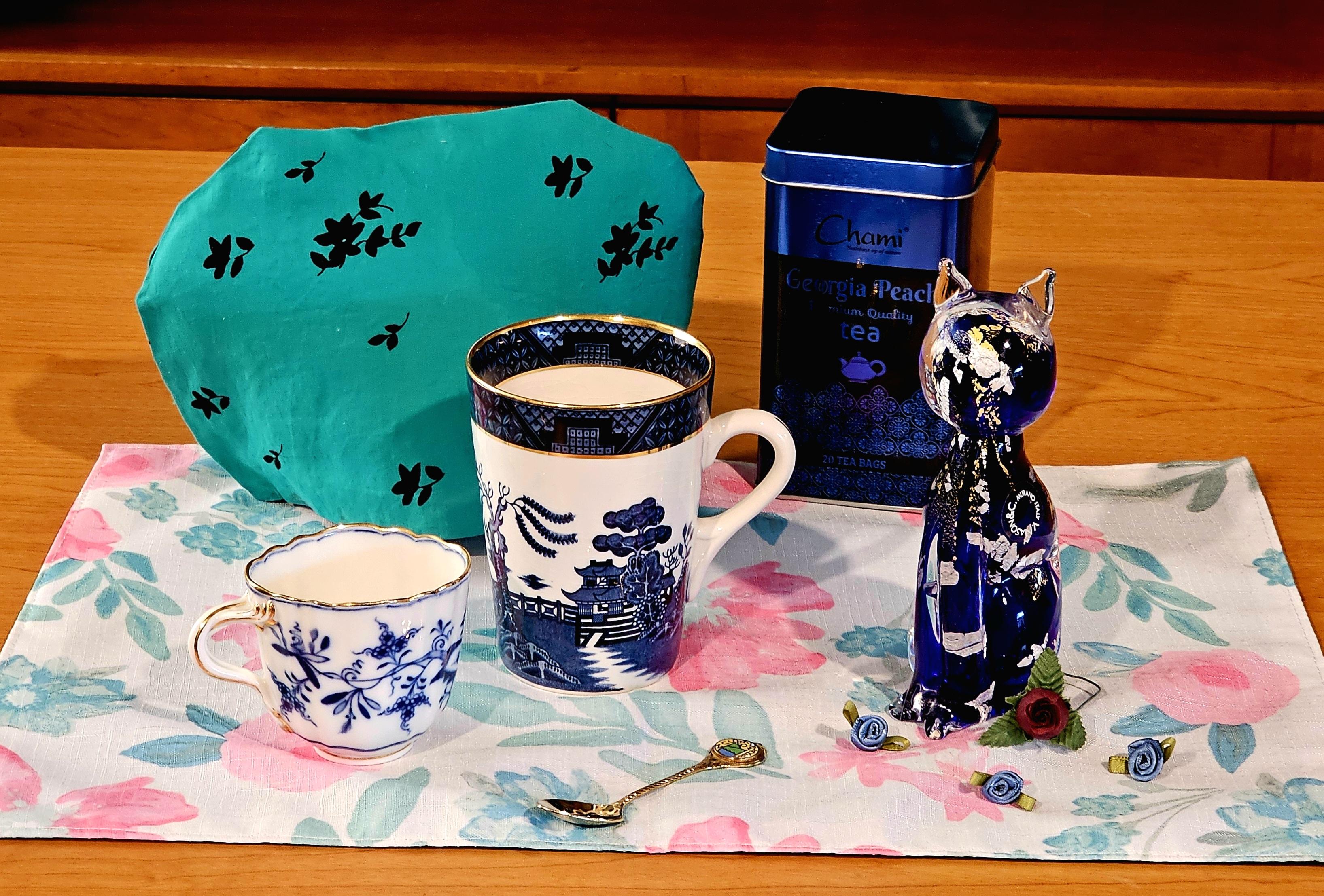 #Tea #Poetry #Teableau #TeaCozy #TeaCosy #BlackTea #Handmade #Sewing #VintageChina #BlueWillow #MuranoGlass #Cats #RobertHerrick #PeachTea #Time