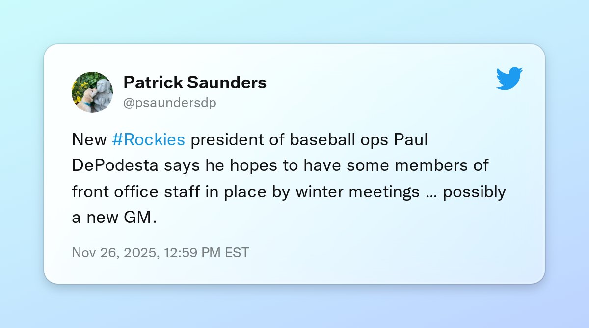 Importance of nailing GM and front office hires cannot be overstated as #Rockies dig out of rubble https://twitter.com/psaundersdp/status/1993741477781049609