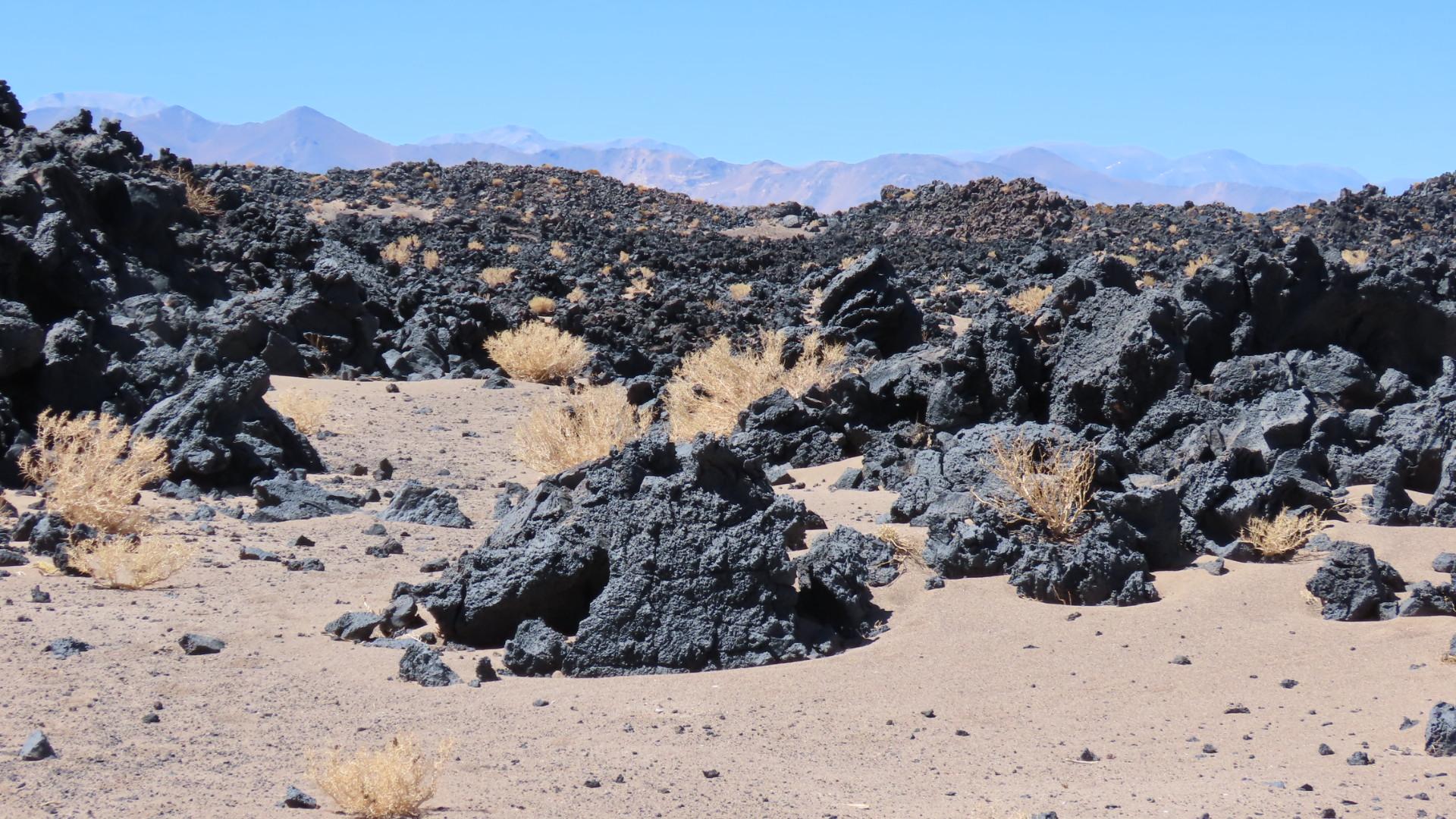 Zwischen Antofagasta de la Sierra und El Peñon gibt es dieses riesige Lavafeld. Das Feld mit 3000 Quadratkilometern entstand durch die Vulkane Alumbrera, La Laguna und Jote. Es gibt Lavaströme bis 120 Metern mit Lavatunneln.