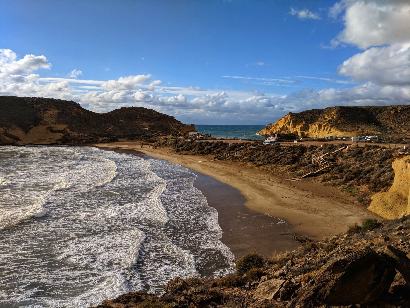 Den Tag beginnen wir am Leuchtturm von Portocolom bzw. mit einem Besuch der Wanderwege rund um die Klippen. Mit der Drohne versuche ich, die Landschaft einzufangen; zum Leuchtturm selbst gelangt man nicht. Die Höhlen, die auf Google so imposant wirken, sind von oben leider kaum zu erkennen, aber ein wenig lässt sich mit der Drohne erfassen.