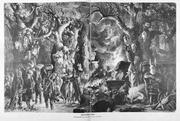 Illustration of an Ancient Nordic Yule celebration. Public Domain. Image courtesy of Wikimedia.