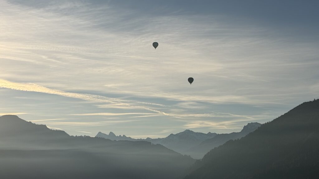 Sehr eindrücklich war es am Samstag, unserem Abreisetag, den beiden Heissluftballons zuzuschauen, die im Licht der ersten Sonnenstrahlen vom Talgrund des Prättigaus aufstiegen und sich auf ihre Fahrt über die Berge machten.