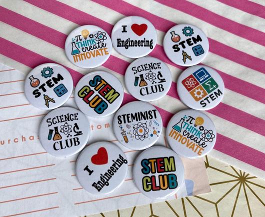 🔬 ⚛️ ➕ STEM badges - great for clubs, schools and events https://www.koolbadges.co.uk/stem-subject-icons-badge-p-11371.html #stem #stemsubjects #stembadges #badges #stemclub #steminist #womeninstem #stemstudent #handmade #koolbadges #scienceclub #maths #engineering