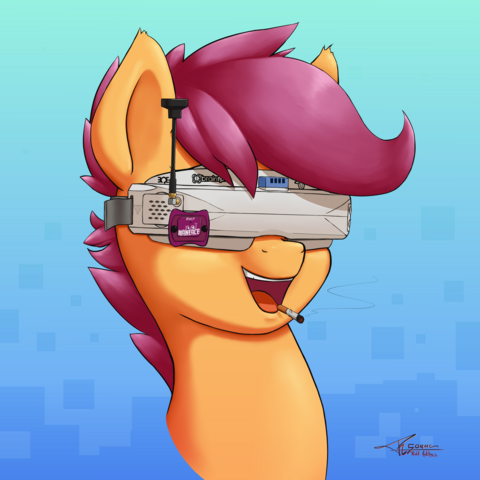 "As per request of a good friend i drew scootaloo with FPV goggles.