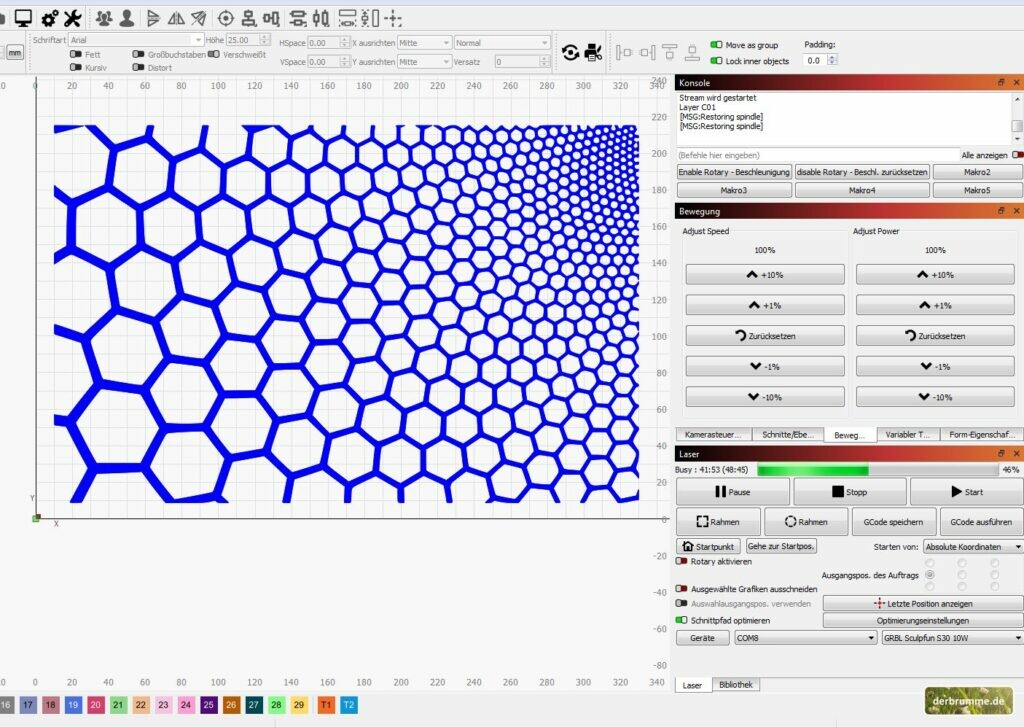 Achduheilige! Letzten Oktober hab ich nen Laser-Artikel gebloggt, in dem ich ein bisschen mit verschiedenen Parametern meines CNC-Lasers rumgespielt habe. Schnittgeschwindigkeit, Anzahl der Wiederholungen, etc.
