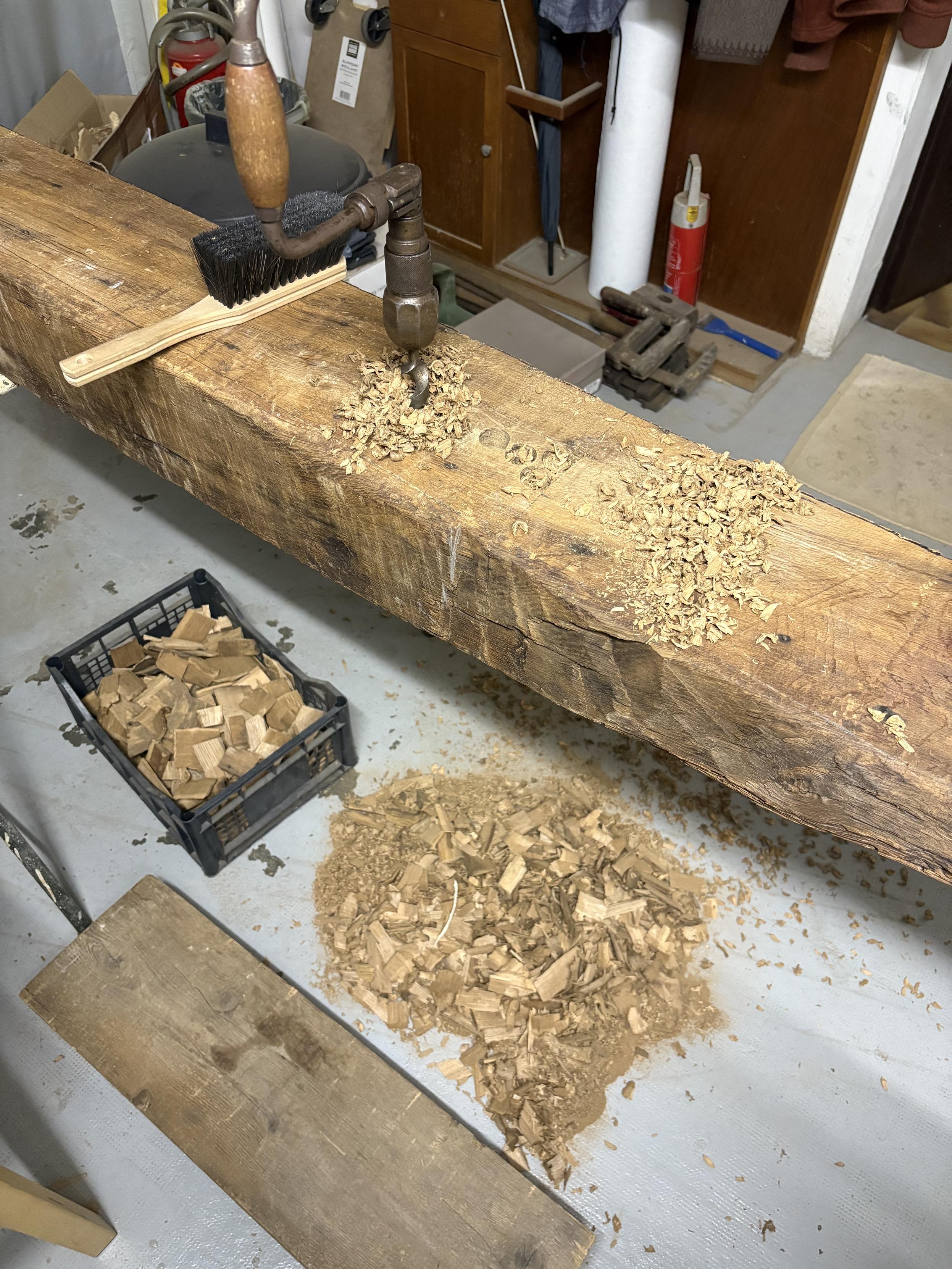 I’d be lying if I said cranking out Ø24mm holes in hardwood with a brace in the vertical direction was easy.