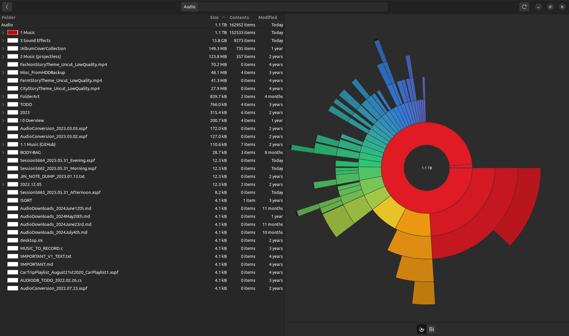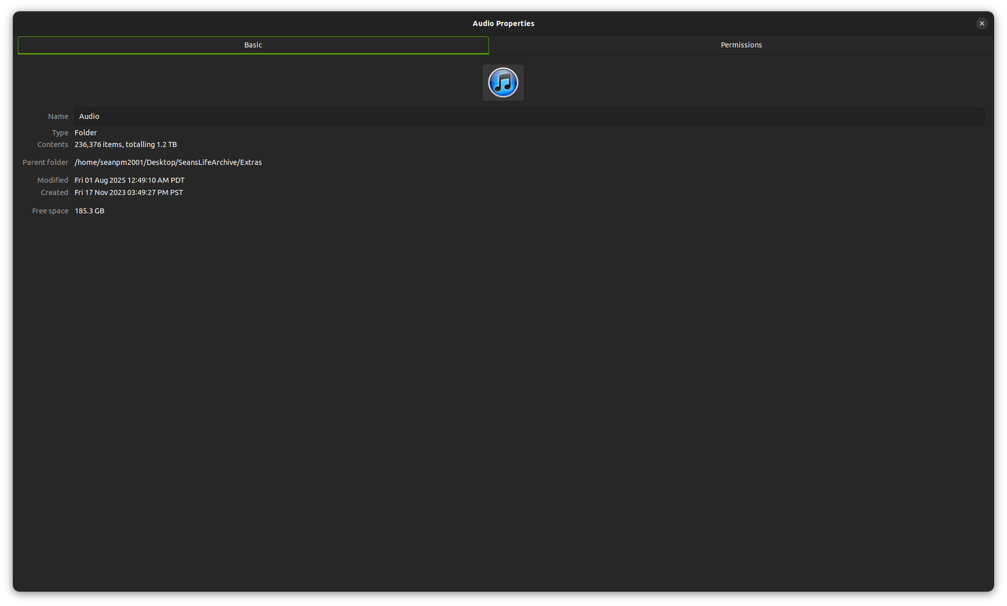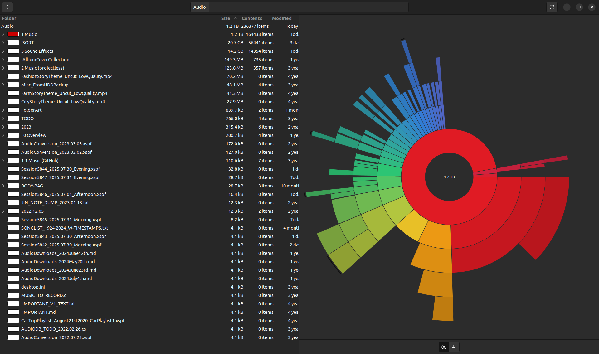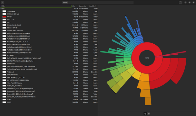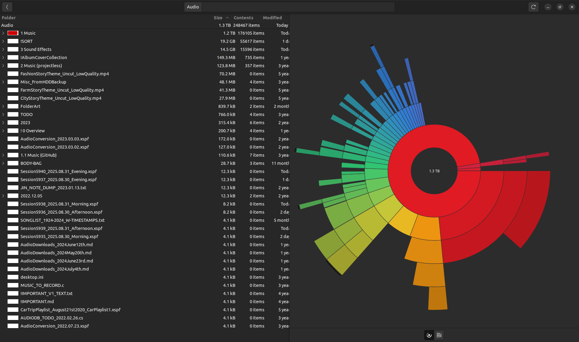 Size: 1.3 terabytes (+0.0 TB) (none of my tools let me see the exact size)