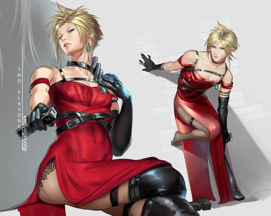πβοΈβ€οΈTwo flavors of that red dress for Cloud (and Sephiroth) #sefikura #γ»γγ£γ―γ© #ff7 #femboy #yaoi