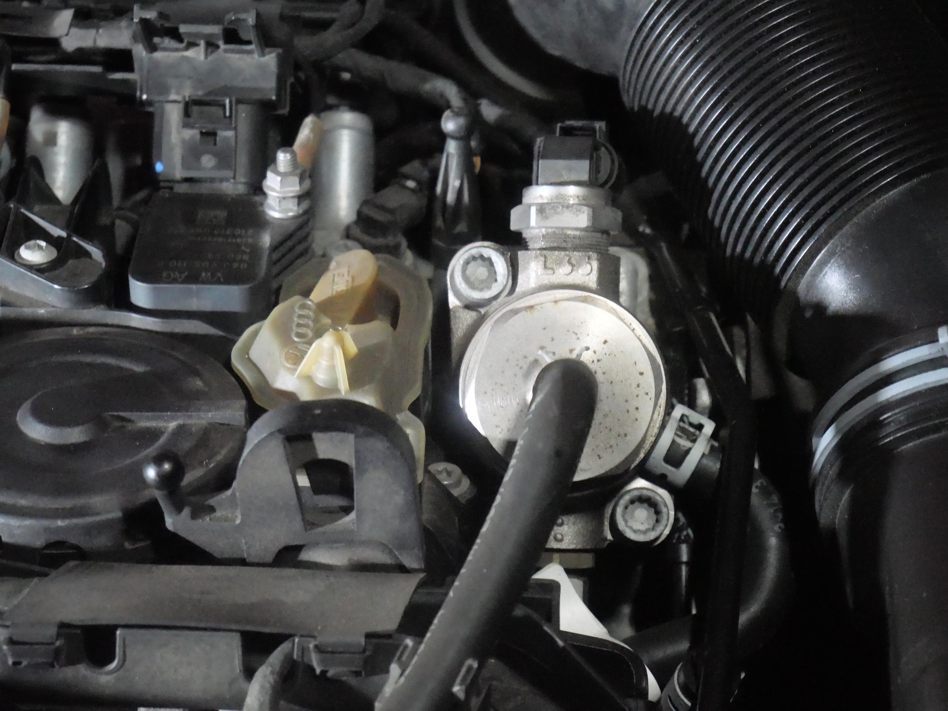 Decided to take a few engine bay #photos of the #EA888 with #LumixG100D after washing my hands, so got a few bonus shots of high pressure #petrol pump and MPI (multi point #injection) extra fuel rail (there are port injectors below it which should hopefully reduce carbon buildup) - USA variants of this #engine don't get this and its been deleted from later engines (2019 onwards?) that have #GPF (gasoline/petrol particulate filter) due to WLTP requirements