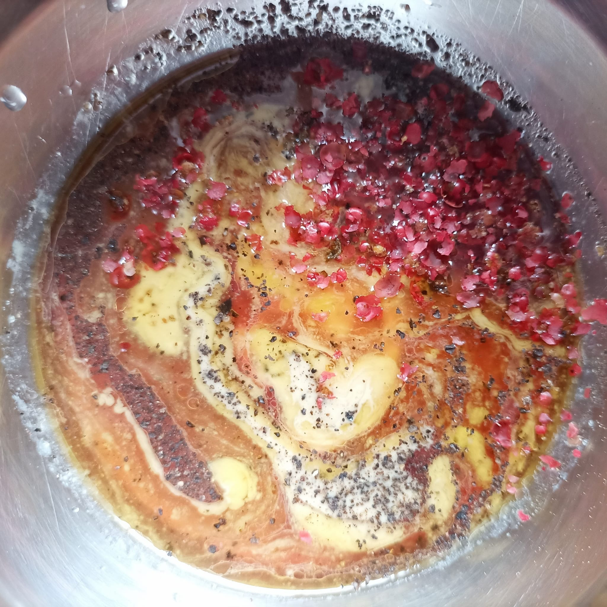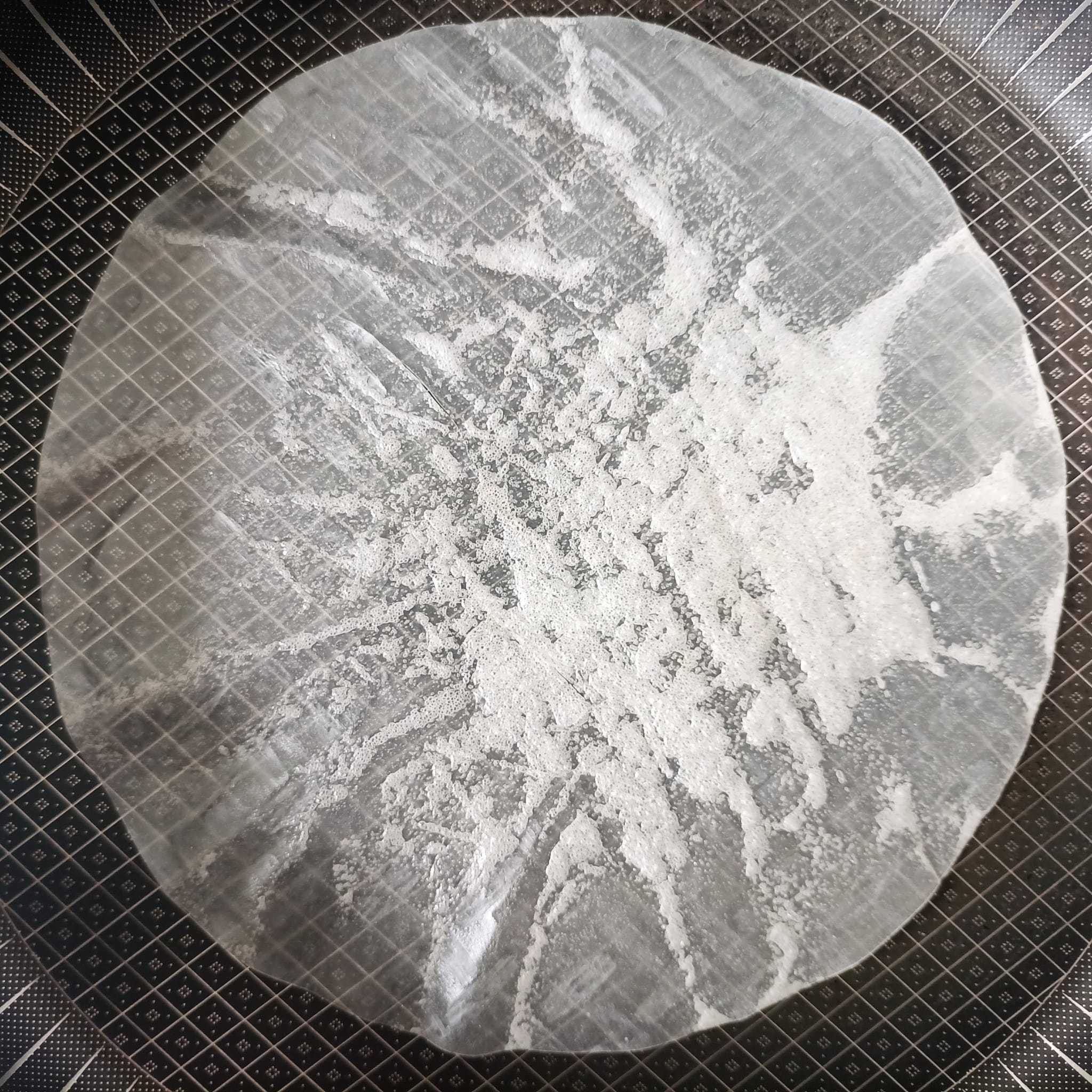 #Pizzateig mit #CremeFraiche bestreichen, mit SalzPfeffer + frischem #Thymian bestreuen.