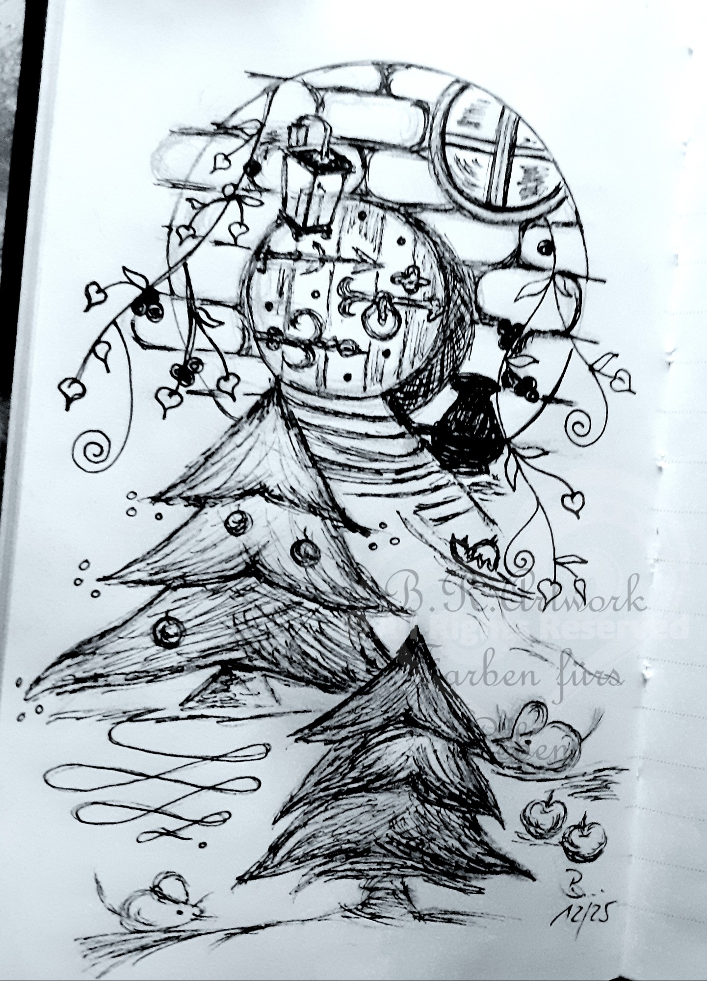 Hab ein kleines Notizbuch geschenkt bekommen und will mal sehen, wie oft ich einen kleinen (neuen) #ArtAdventsCalendar Gruß in die #kleineKunstklasse schicken kann. #artwork #illustration #wildlife ##WildlifeArt #art #skyart #artist #color