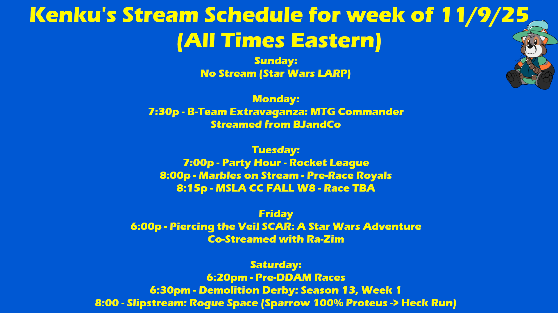 Weekend Stream Sched https://www.twitch.tv/Kenku