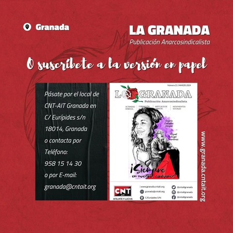 ¡Ya está en la calle! Nueva edición de LA GRANADA, la revista anarcosindicalista de la CNT AIT de Granada.