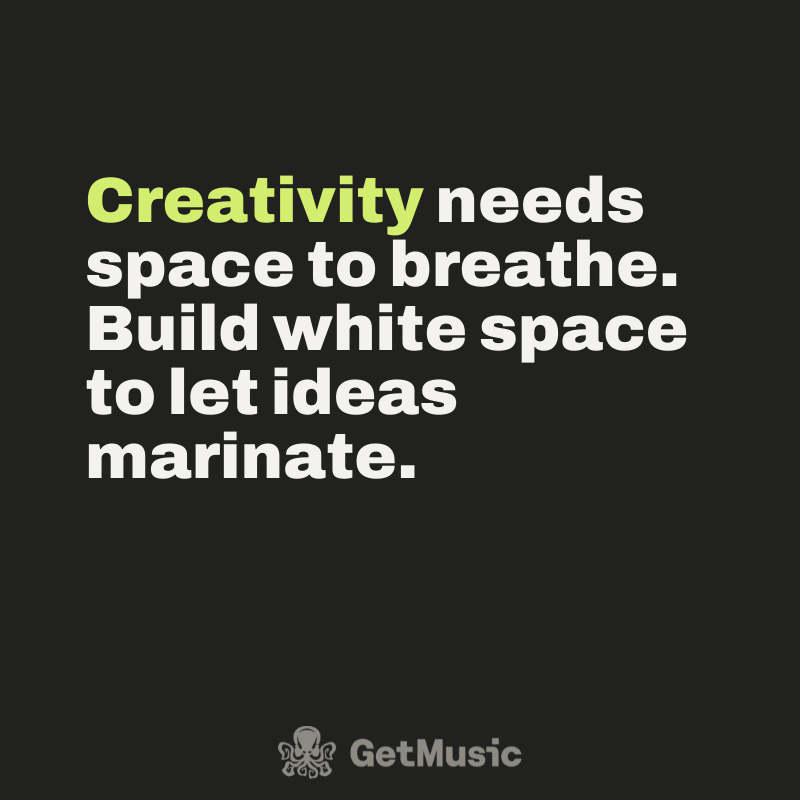 Creativity needs space to breathe. Build white space to let ideas marinate.