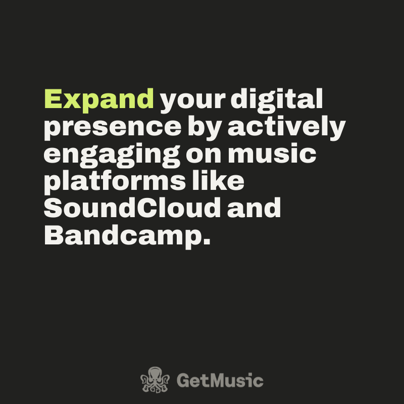 Expand your digital presence by actively engaging on music platforms like SoundCloud and Bandcamp.