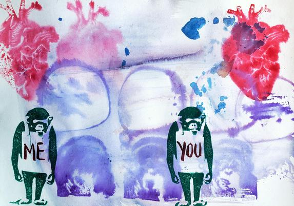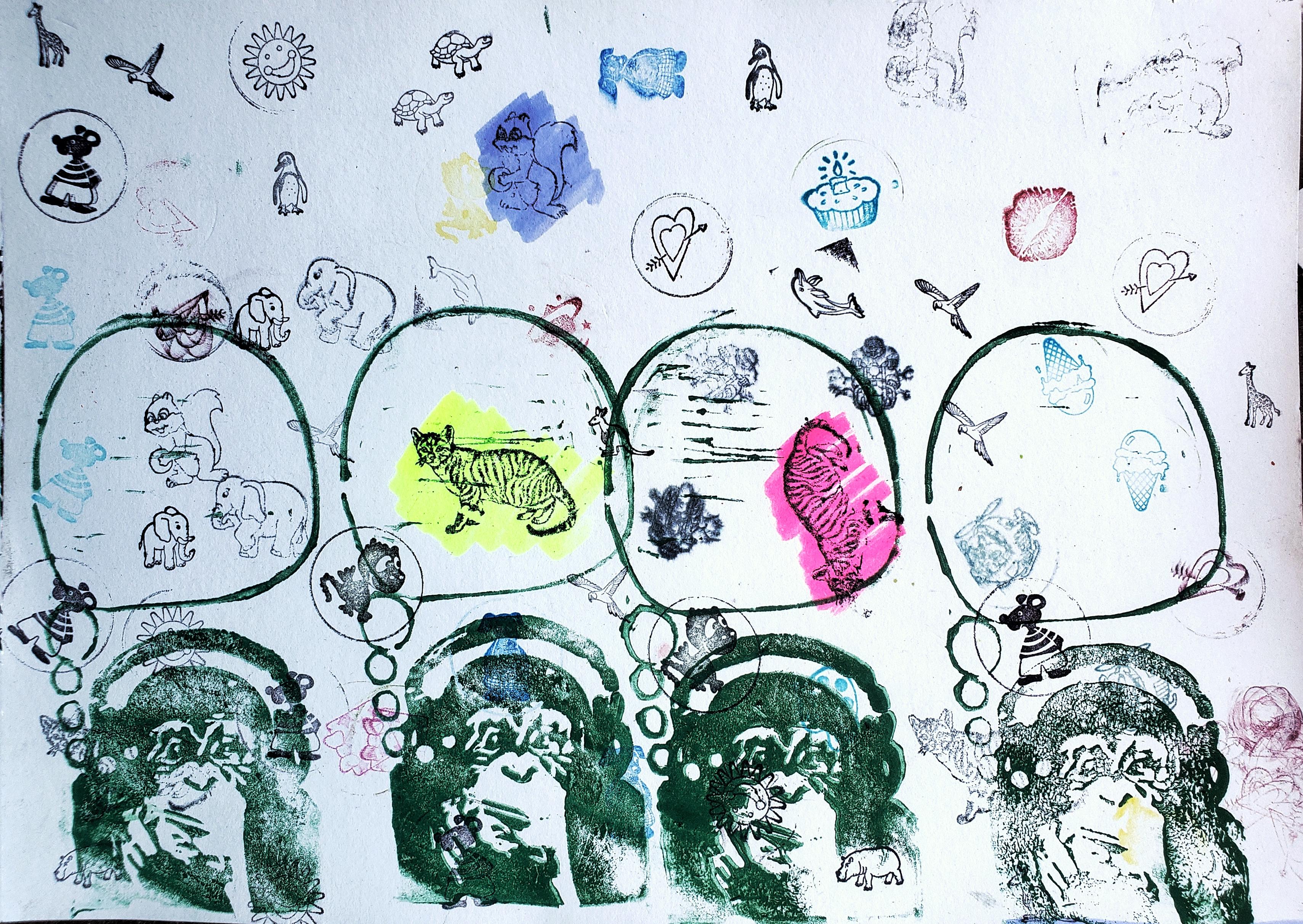#kunst #contemporaryArt #mentalCinema #analogArt #painting #rubberStamp #reliefPrinting #saveBioDiversity #climateActionNow #systemChange #endFossilFuels #makeArtNotWar #noAFD #NoRacism #NoFascism #humanRights #humanDignity #Нетвойны #monkeyThinking #monkeyDreaming #speechBubble #thoughtBubble #chimpanzee #roses #LoveInBloom #RomanticRoses #NatureBeauty #beauty #romance #drippings #scribbles