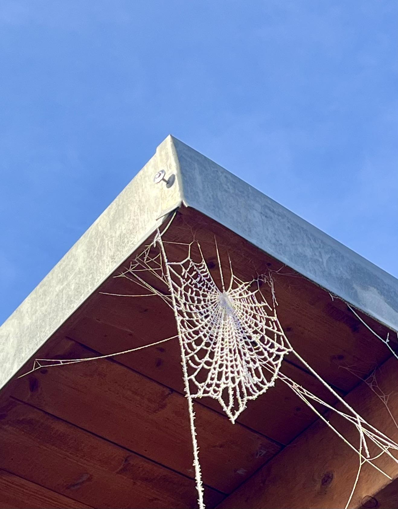 Inconvenience for the #Spider family on silent Sunday. Their recently built home was transformed into a frosty work of art by #hoarfrost. How, I ask, is a sophisticated spider supposed to live here now?