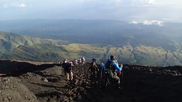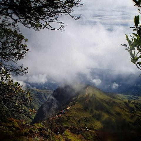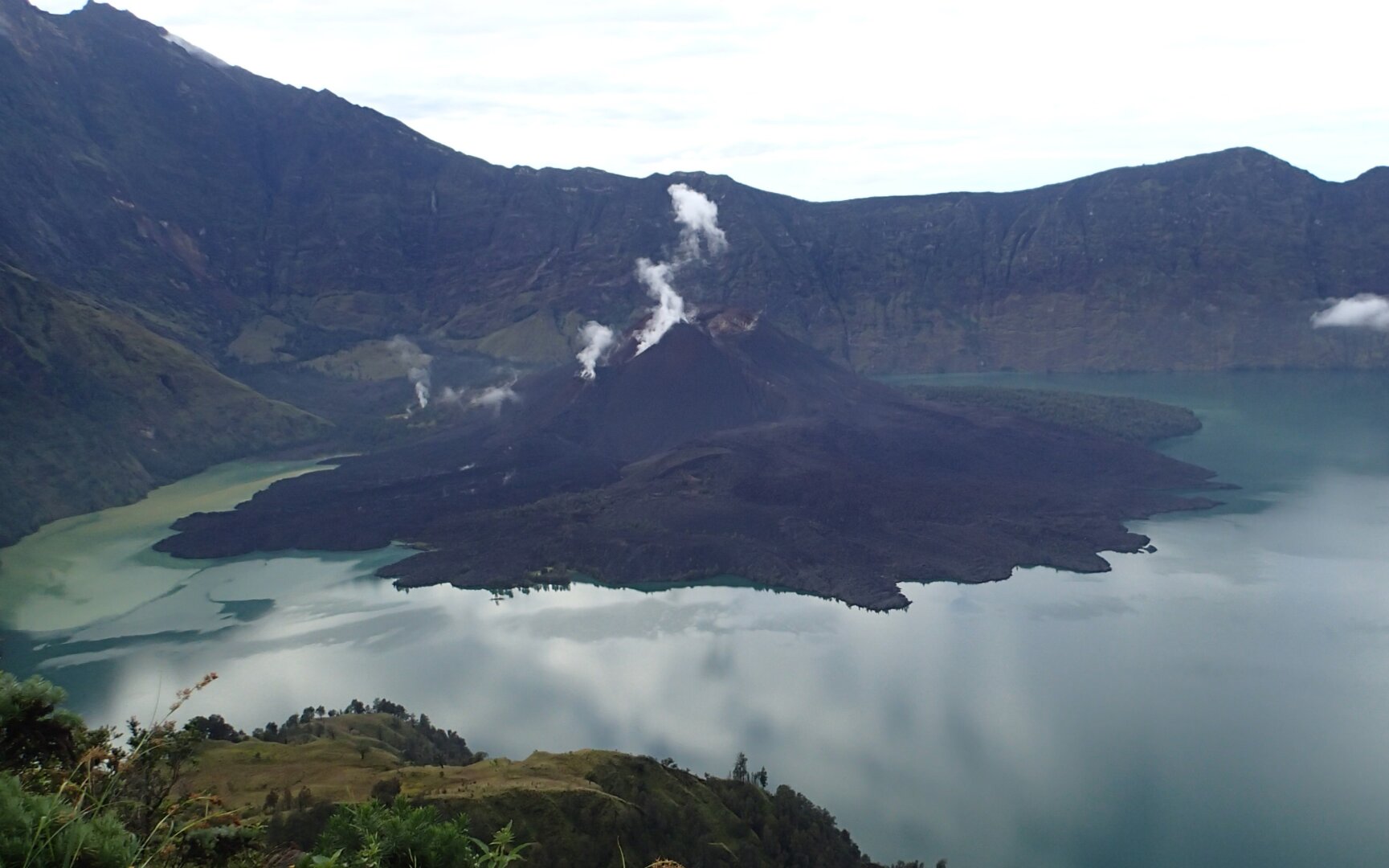 View on Segara Anak, descending into Rinjani's volcanic crater.