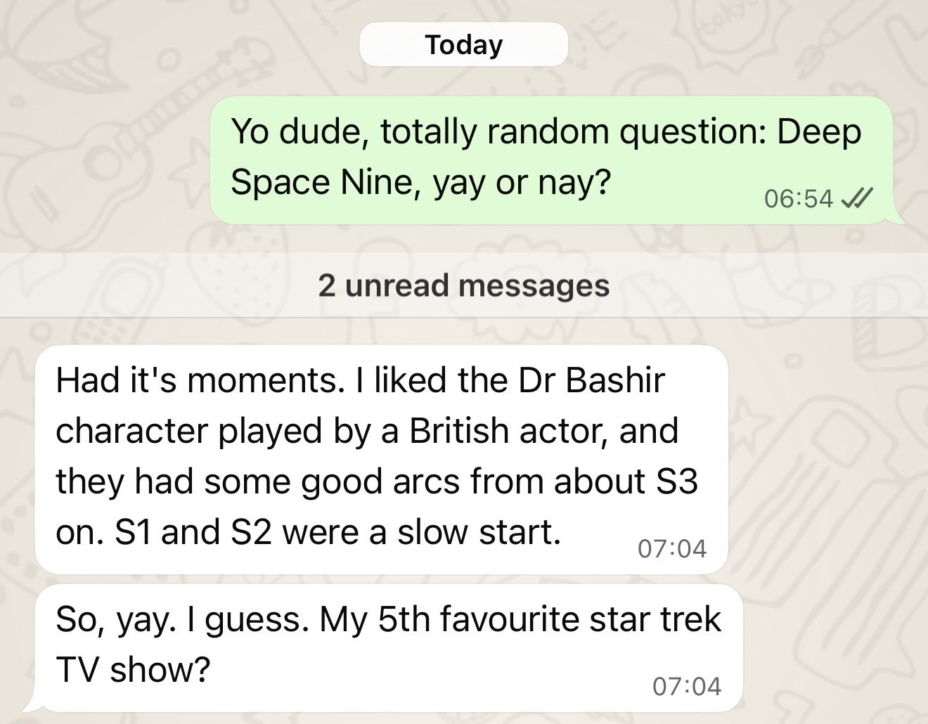 As suggested by @consumablejoy, I asked my friend if he liked DS9. This was his reply.