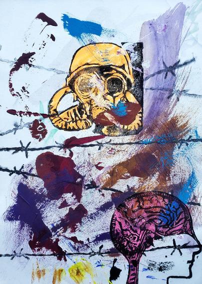 #contemporaryArt #mentalCinema #analogArt #painting #rubberStamp #reliefPrinting #saveBioDiversity #climateActionNow #systemChange #endFossilFuels #makeArtNotWar #noAFD #NoRacism #NoFascism #humanRights #humanDignity #Нетвойны #barbedWire #fence #border #territory #frontier #prison #escape #soldier #gasMask #toxicGas #airPollution #suffocate #brain #anatomy #neocortex #neurosciences #neurobiology #cognition #perception #emotion