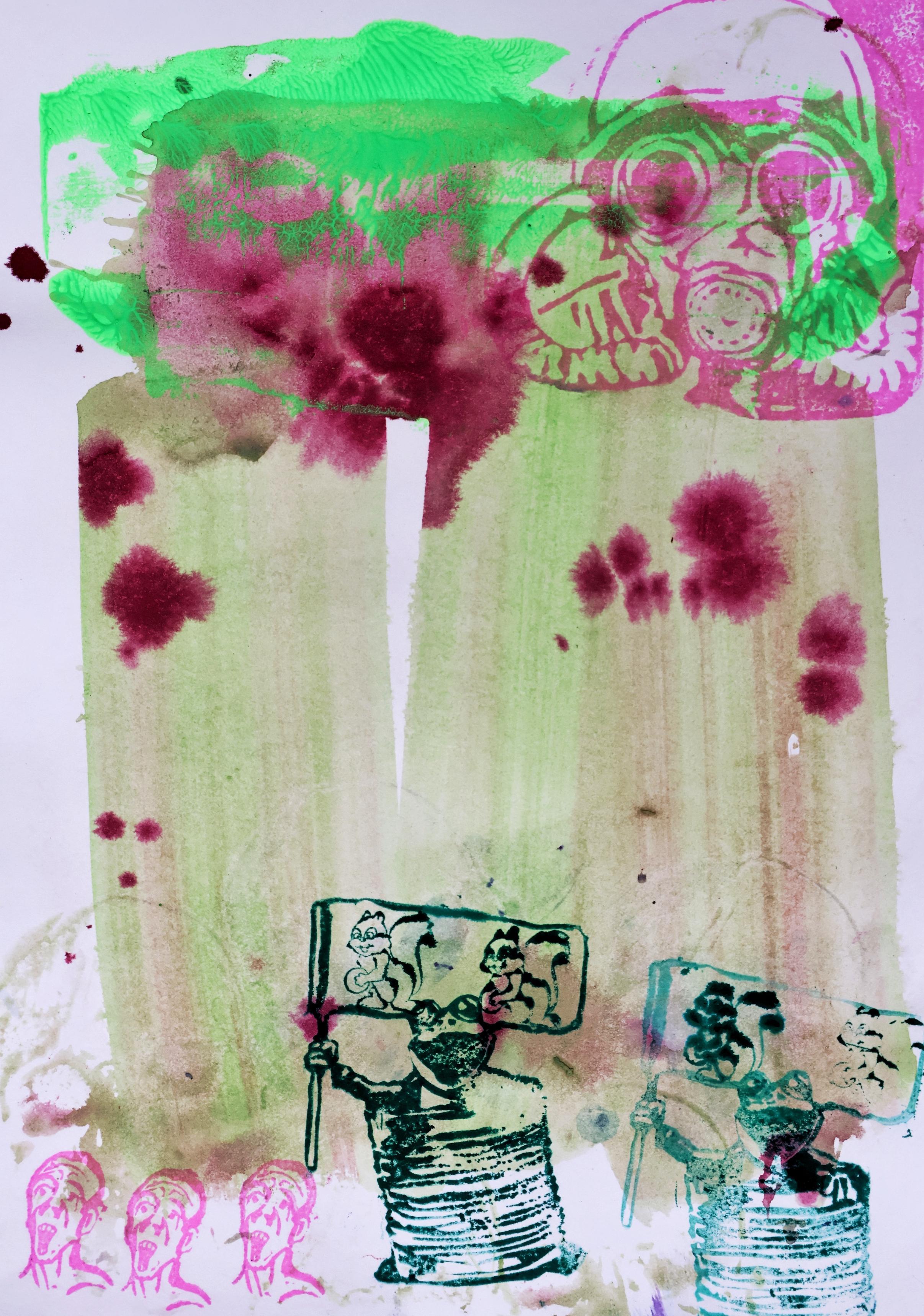 #contemporaryArt #mentalCinema #analogArt #painting #rubberStamp #reliefPrinting #saveBioDiversity #climateActionNow #systemChange #endFossilFuels #makeArtNotWar #noAFD #NoRacism #NoFascism #humanRights #humanDignity #Нетвойны #gasmask #soldier #suffocate #asphyxia #atmosphere #biosphere #airPollution #toxicGas #frog #tinCan #flag #squirrel #skull #death #mementoMori #depression #screamingHeads #screamingMen #screamingLoud