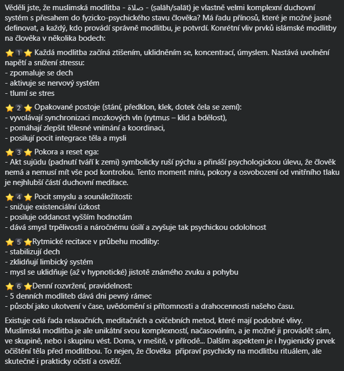 Věděli jste, že muslimská modlitba - صلاة - (ṣalāh/salāt) je vlastně velmi komplexní duchovní systém s přesahem do fyzicko-psychického stavu člověka?
