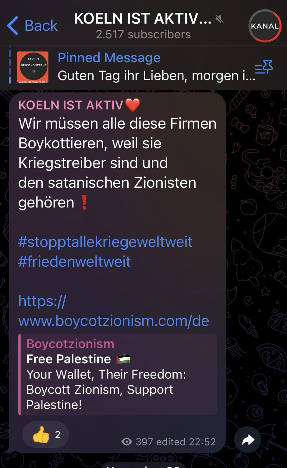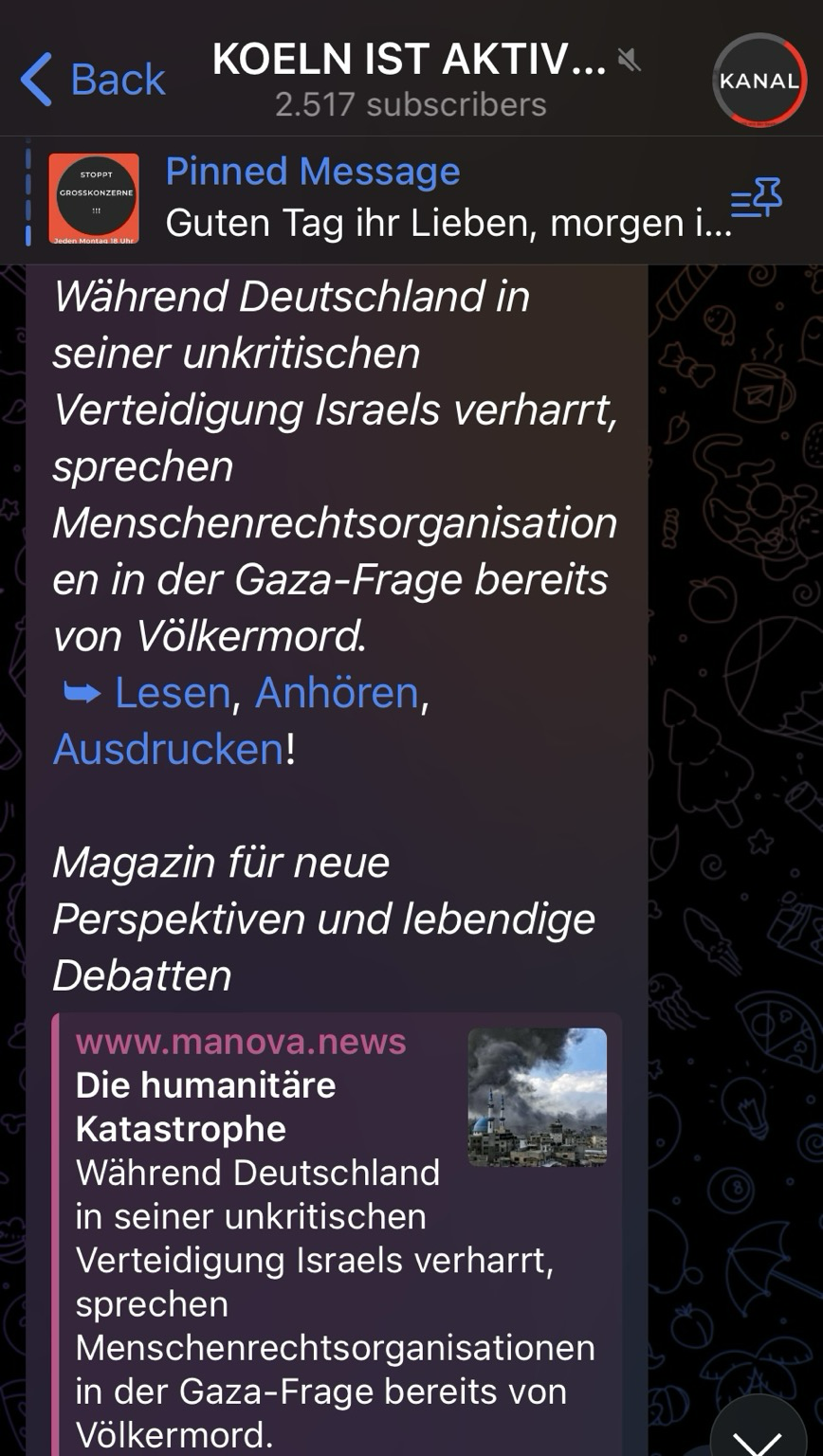 #Antisemitismus, #Israelhass und Hetze gegen die #Ukraine - der #Telegramkanal #Koelnistaktiv von #BiancaPfaffenholz auf der Suche nach neuen Sektengläubigen…
