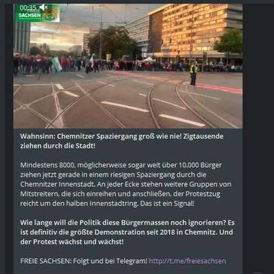 Darüberhinaus betreibt der Inhaber des Accounts einen #Querfront #Telegramkanal, in diesem brüstete er sich mit seinem Erfolg bei #Kaufland und bewirbt u.a. die Freien Sachsen und hetzt gegen Coronaimpfungen. 8/x