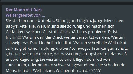 In Deutschland hat man es bislang nicht geschafft, dagegenzuhalten. Meiner Meinung nach, sähe das Soziale Netzwerk #Telegram wesentlich freundlicher aus, wenn sich mehr vernünftige Menschen dort anmelden würden. Mehr Kanäle gründen würden, meinetwegen mit putzigen Tierbildern.