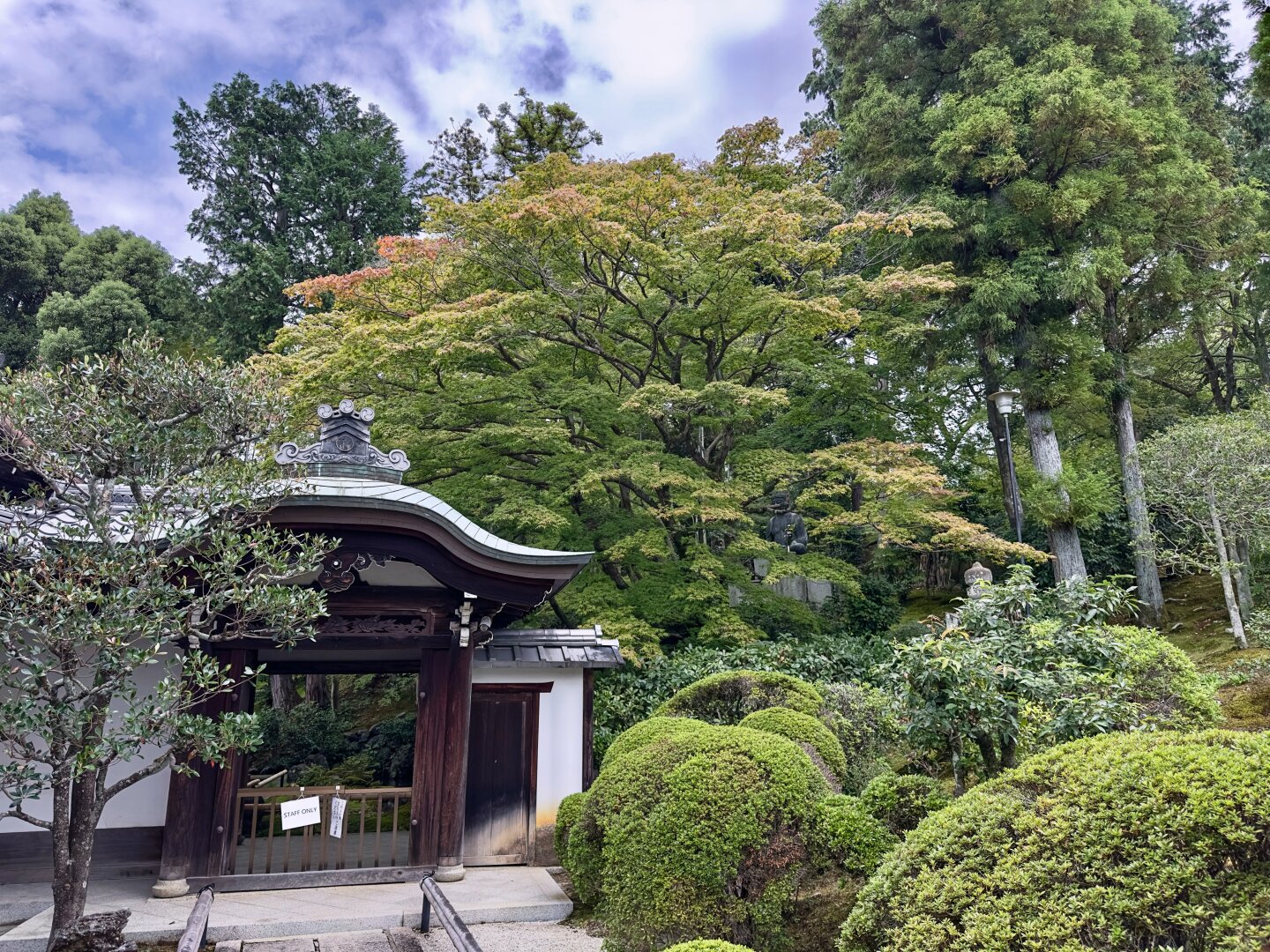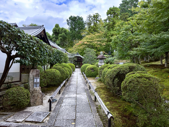 A hidden temple in Kyoto, Eishoin Temple quietly awaits the arrival of autumn. Usually closed to the public, it reveals glimpses of its beauty only during the season of crimson leaves. These scenes were captured from the entrance, where the first hints of color begin to appear.