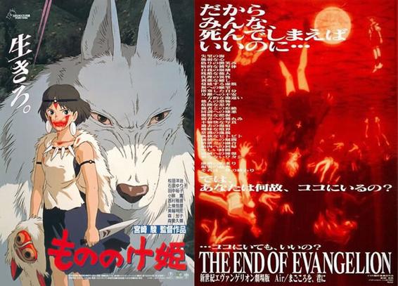 Mentre quella di "Mononoke" riportava la scritta "Vivi!", la locandina del film di #HideakiAnno alludeva alla morte di tutta l'Umanità quale scelta più opportuna per il protagonista Shinji.
