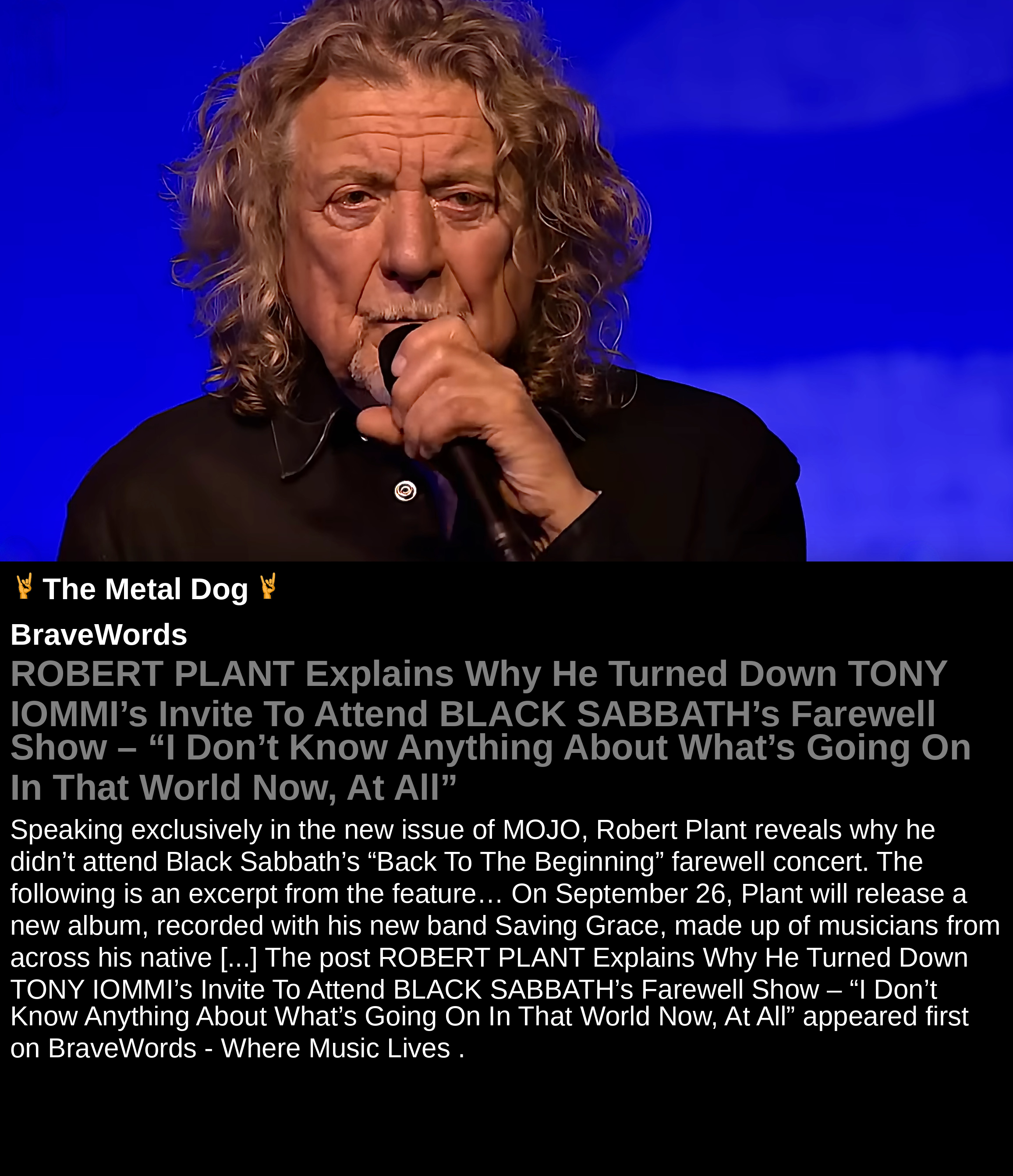 ROBERT PLANT Explains Why He Turned Down TONY IOMMI’s Invite To Attend BLACK SABBATH’s Farewell Show – “I Don’t Know Anything About What’s Going On In That World Now, At All”