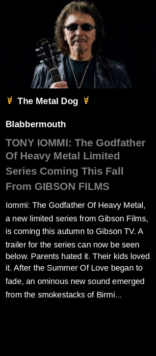 #TONYIOMMI #GIBSONFILMS #TheGodfatherOfHeavyMetal #LimitedSeriesComingThisFallFrom #heavymetal #Blabbermouth #metal #music