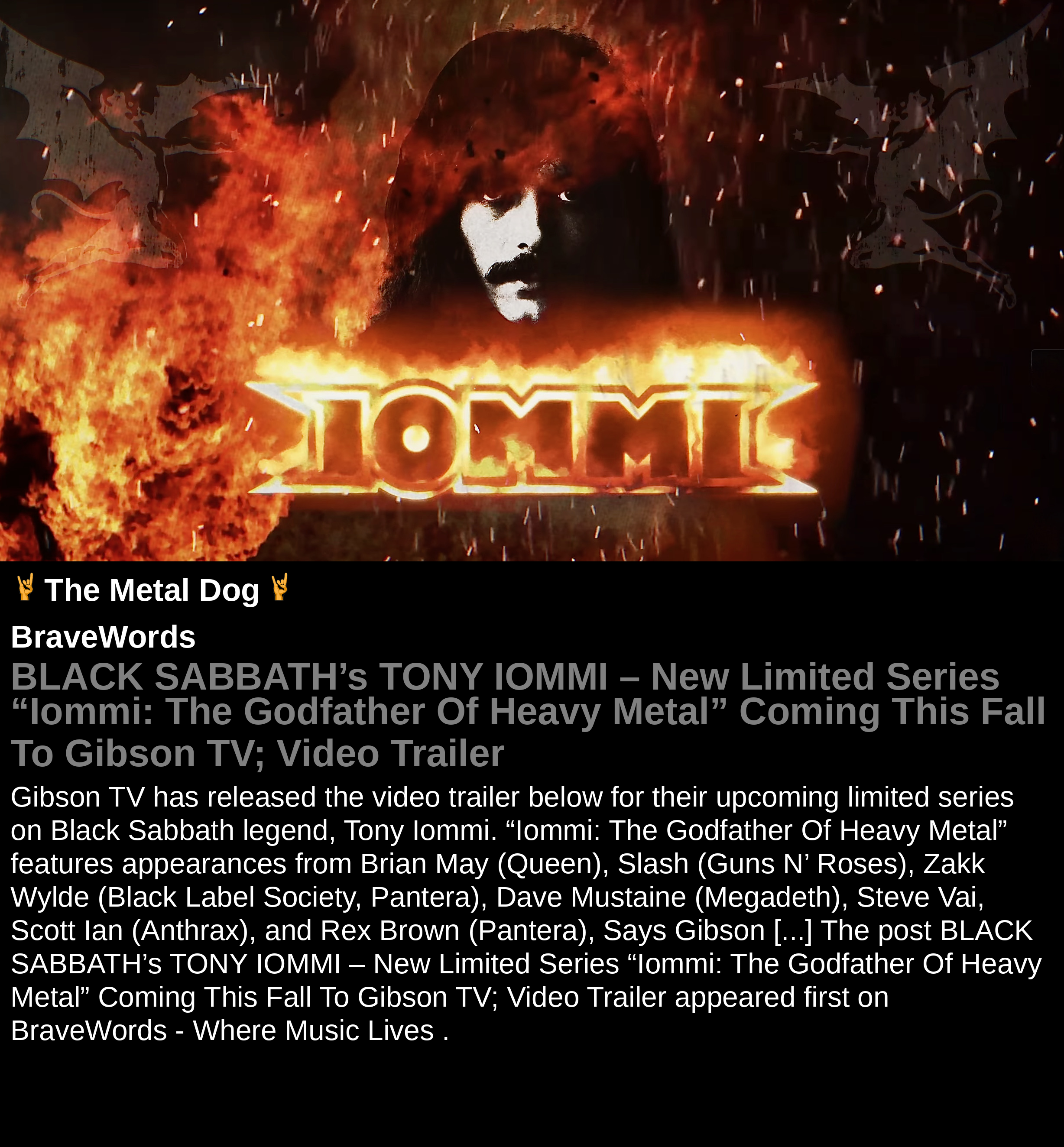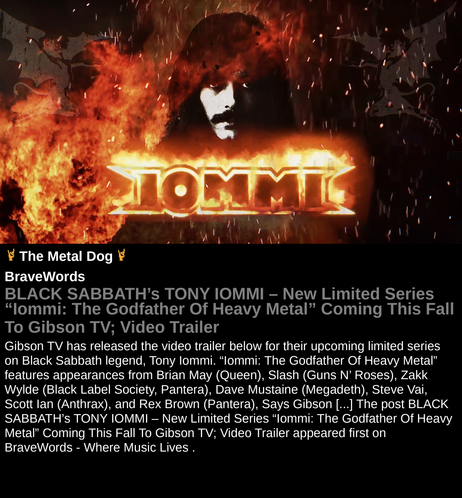#BLACKSABBATH #TONYIOMMI #NewLimitedSeries #Iommi #heavymetal #newrelease #video #BraveWords #metal #music